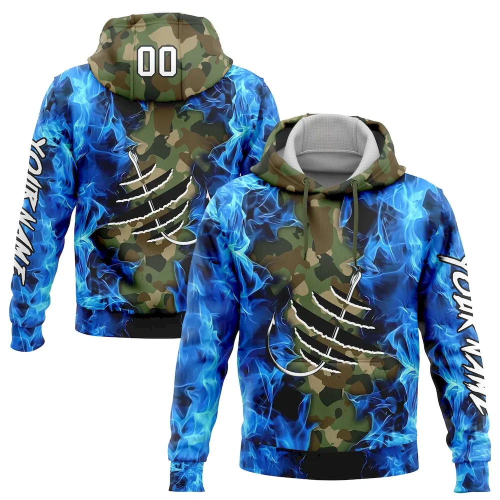 €38.99Custom Stitched Camo White-Black 3D Flame And Fish Hook Fishing Sports Pullover Sweatshirt Salute To Service Hoodie