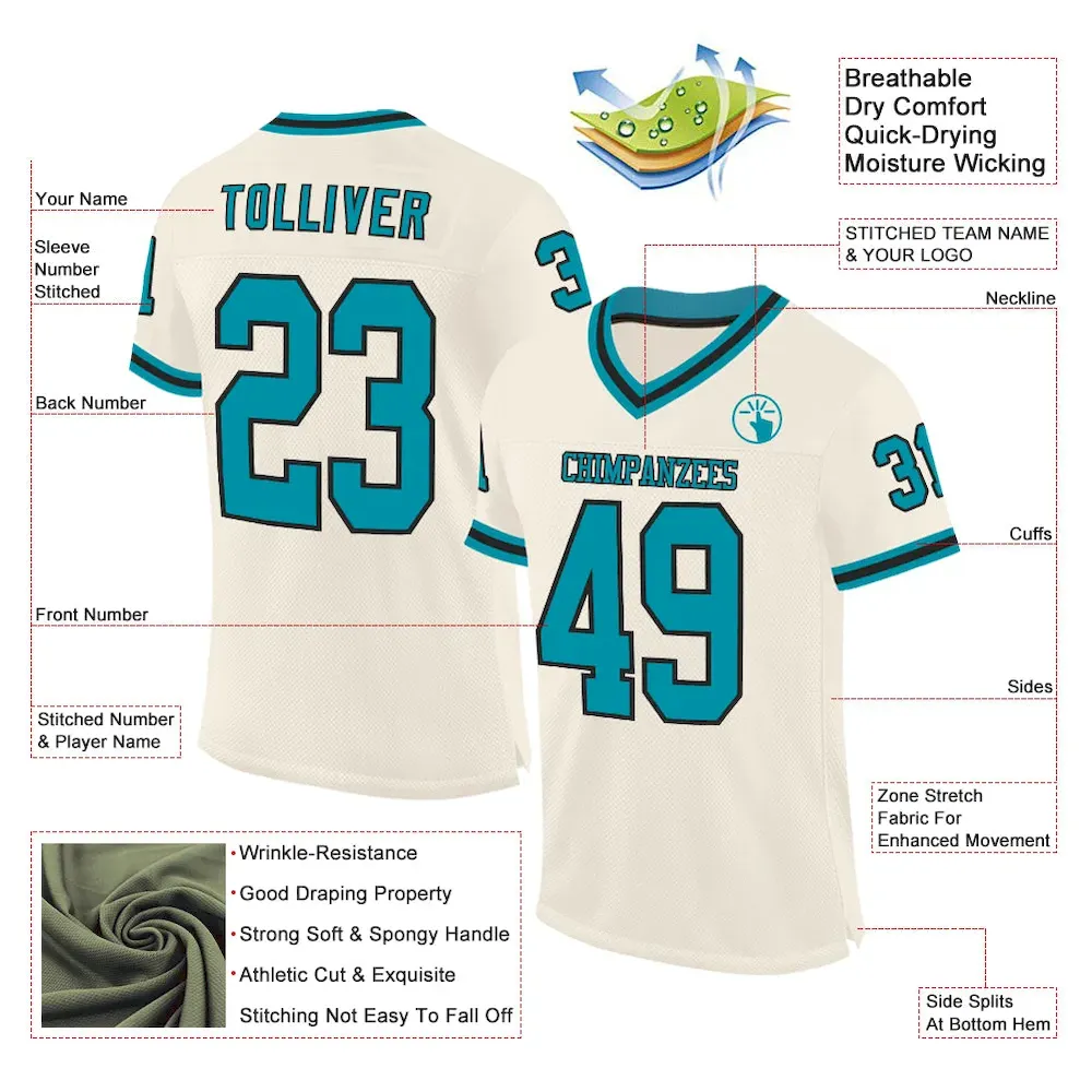 €29.99Custom Cream Teal-Black Mesh Authentic Throwback Football Jersey