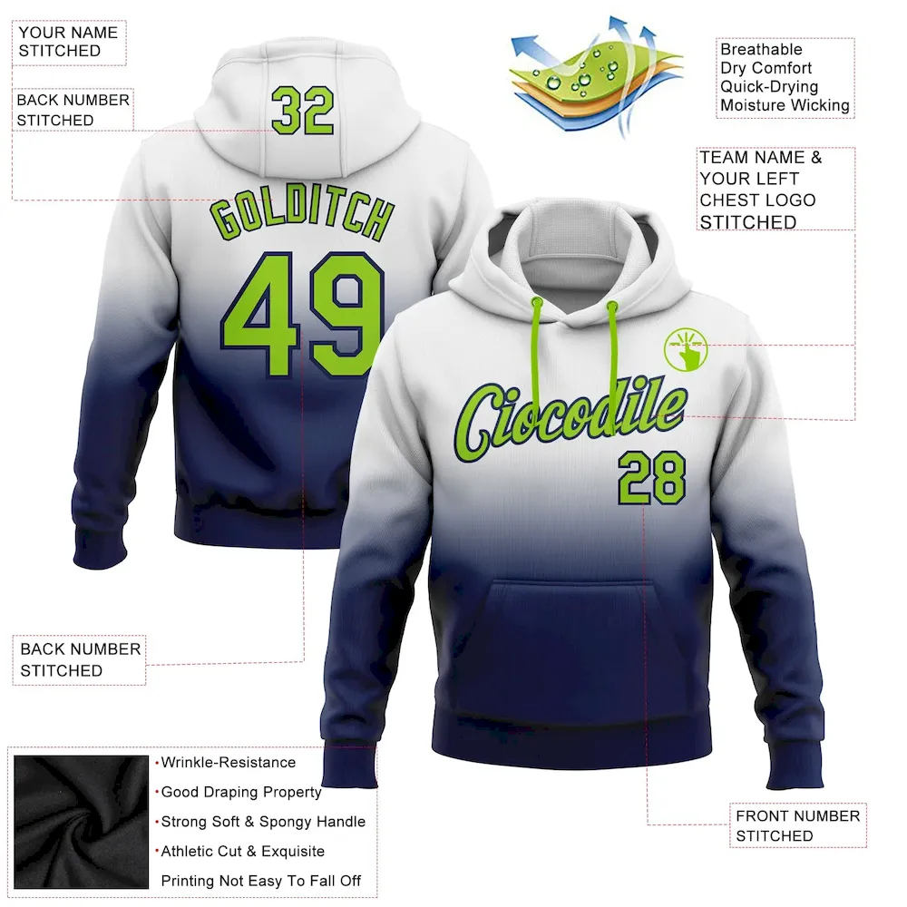 €27.99Custom Stitched White Neon Green-Navy Fade Fashion Sports Pullover Sweatshirt Hoodie
