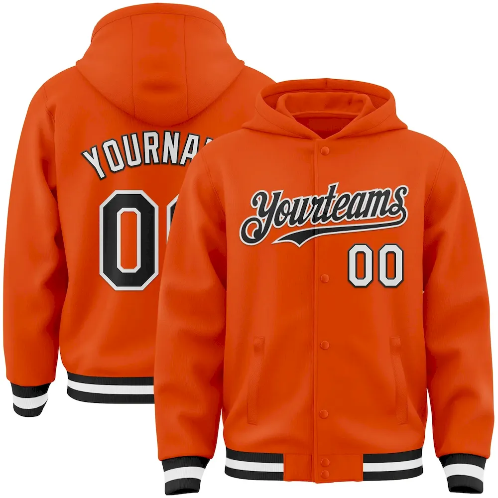 €18.40Custom Orange Black-White Bomber Full-Snap Varsity Letterman Hoodie Jacket