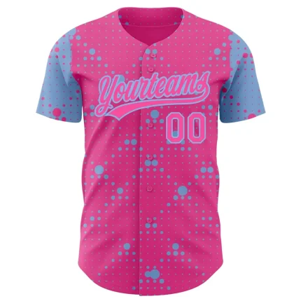 Custom Pink Light Blue 3D Pattern Design Geometric Halftone Dots Authentic Baseball Jersey