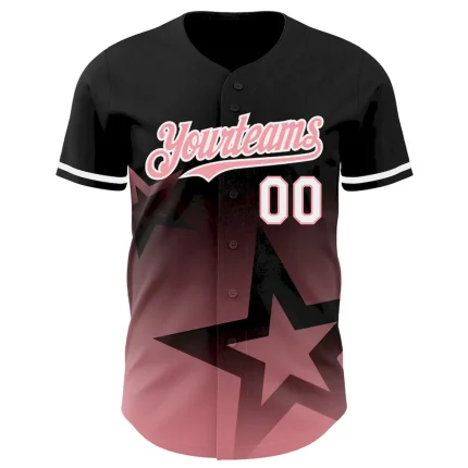 Custom Black Medium Pink-White 3D Pattern Design Gradient Style Twinkle Star Authentic Baseball Jersey