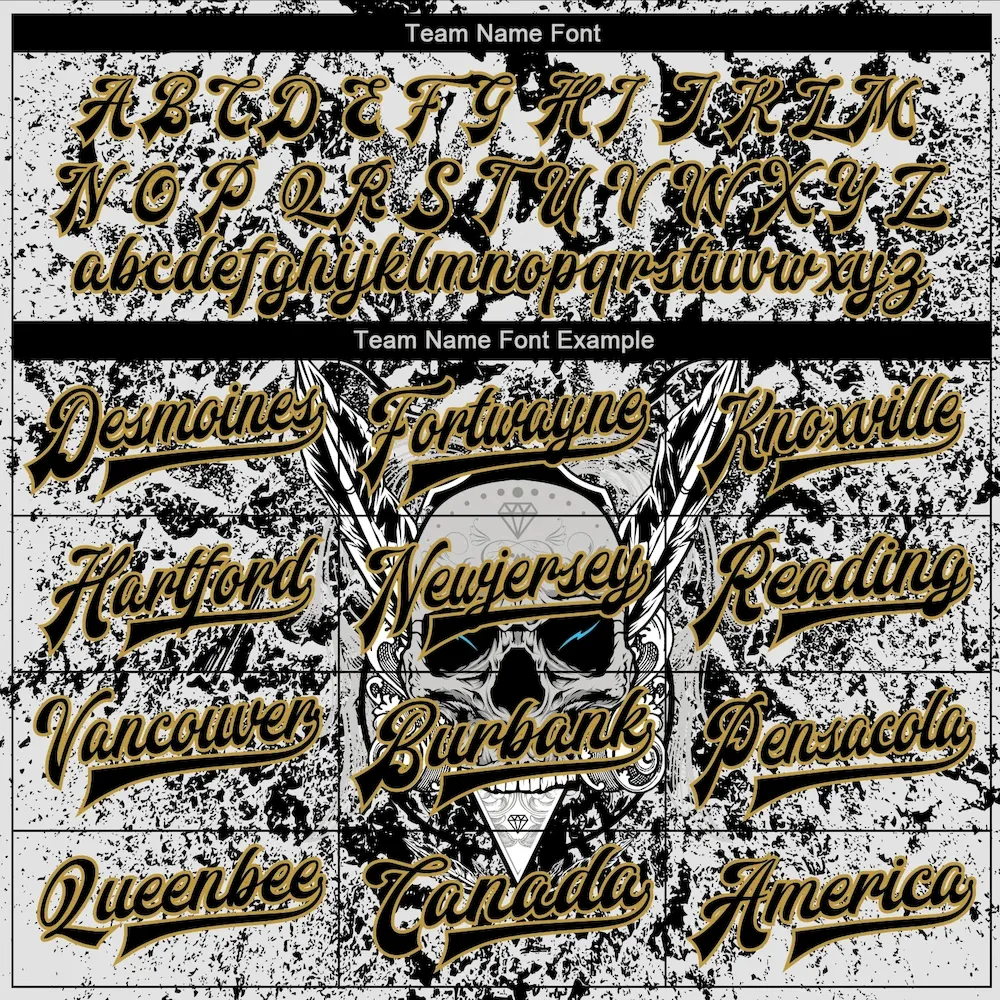 Custom Gray Black-Old Gold Skull With Feather 3D Bomber Full-Snap Varsity Letterman Two Tone Jacket