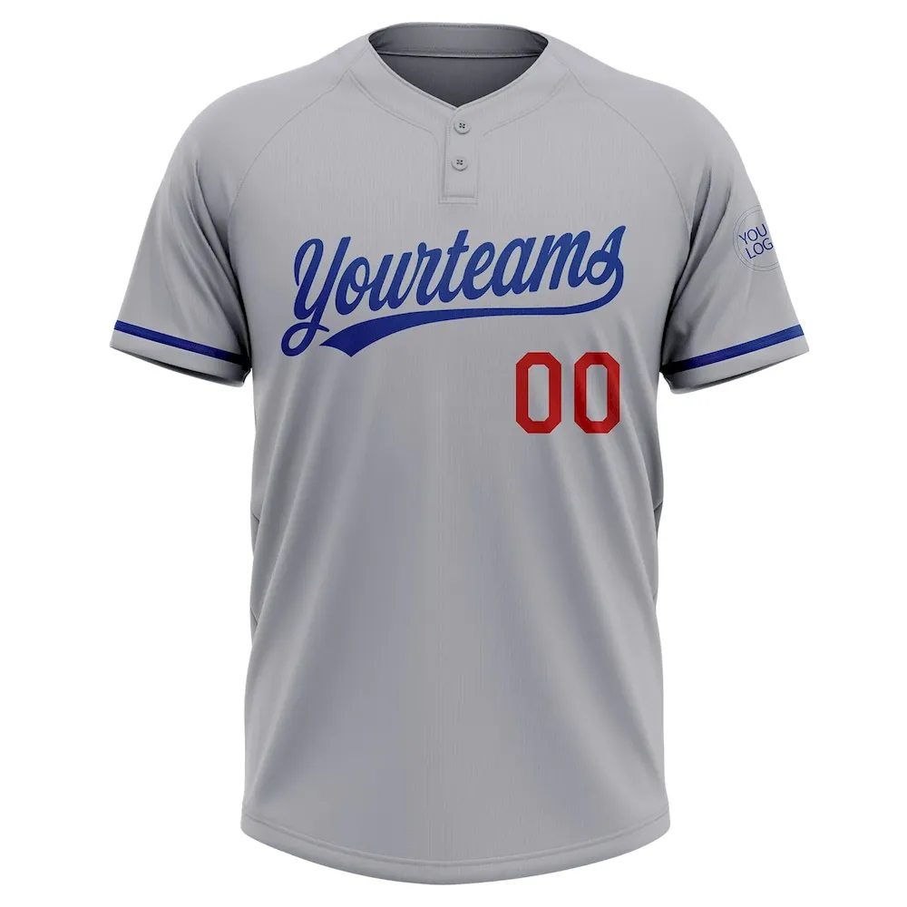 Custom Gray Royal-Red Two-Button Unisex Softball Jersey