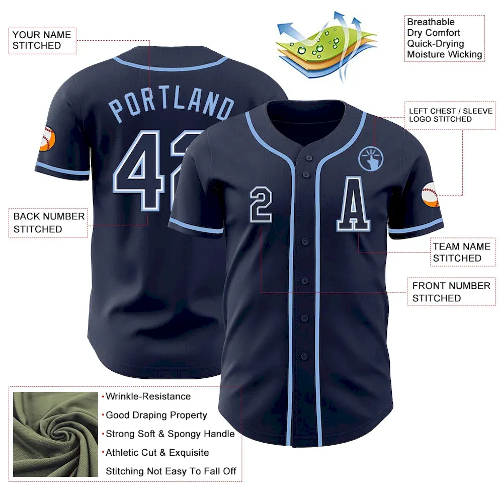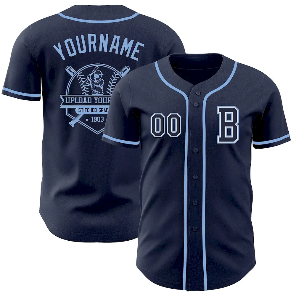 Custom Navy White-Light Blue Authentic Baseball Jersey