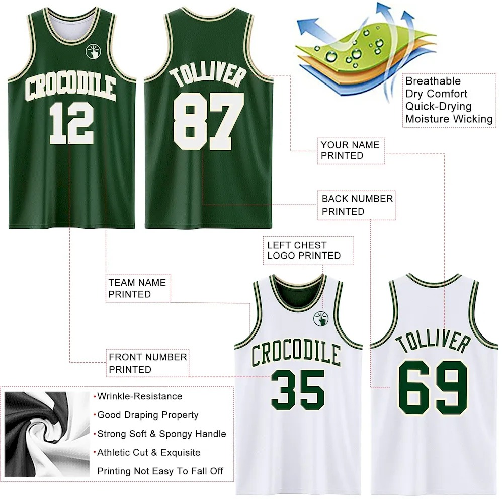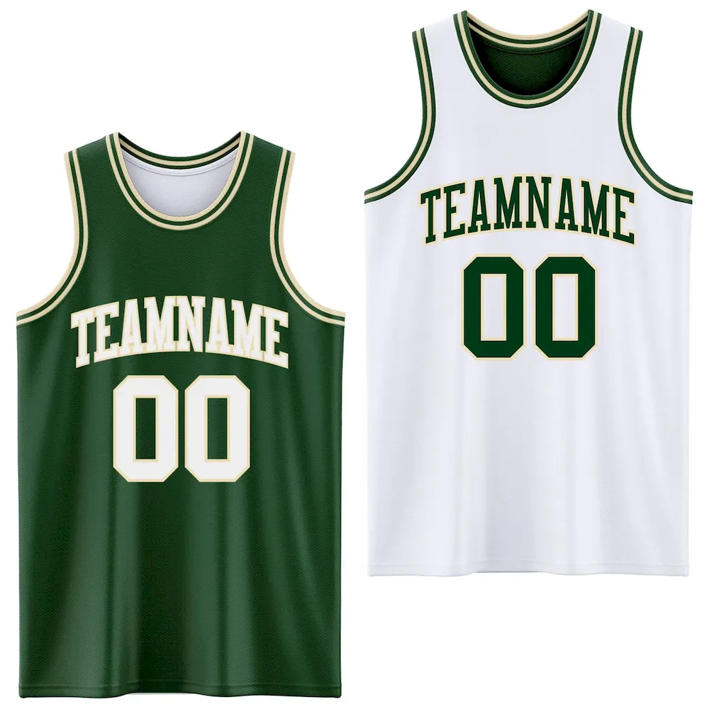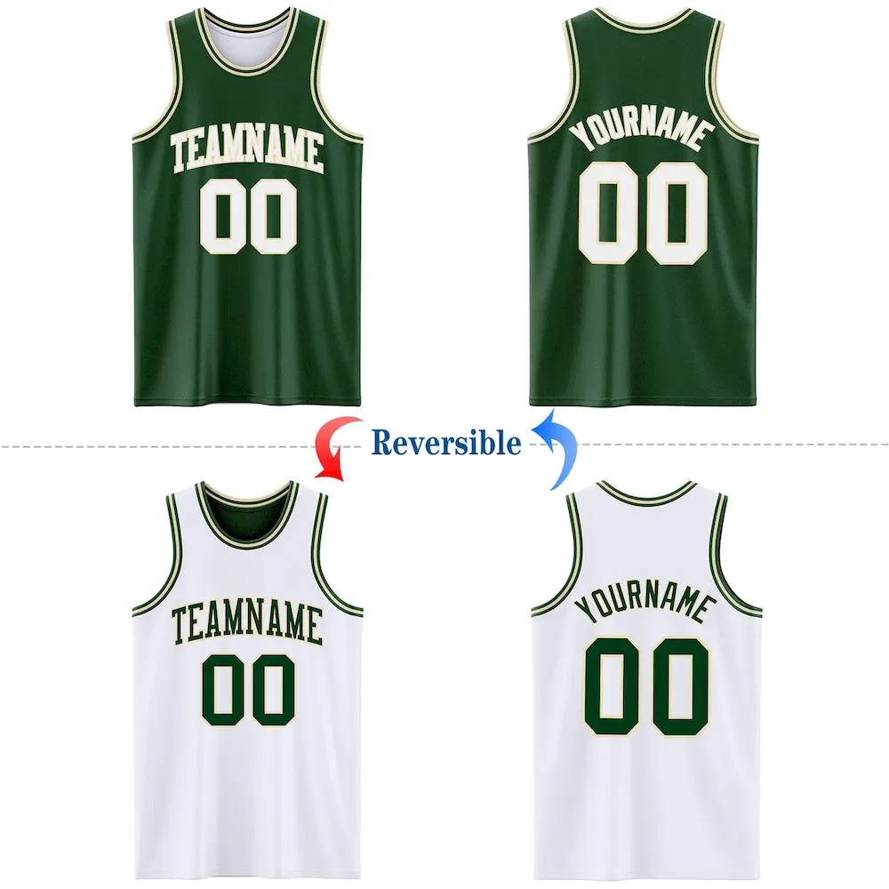 Custom Reversible Green White-Cream Double Side Basketball Jersey