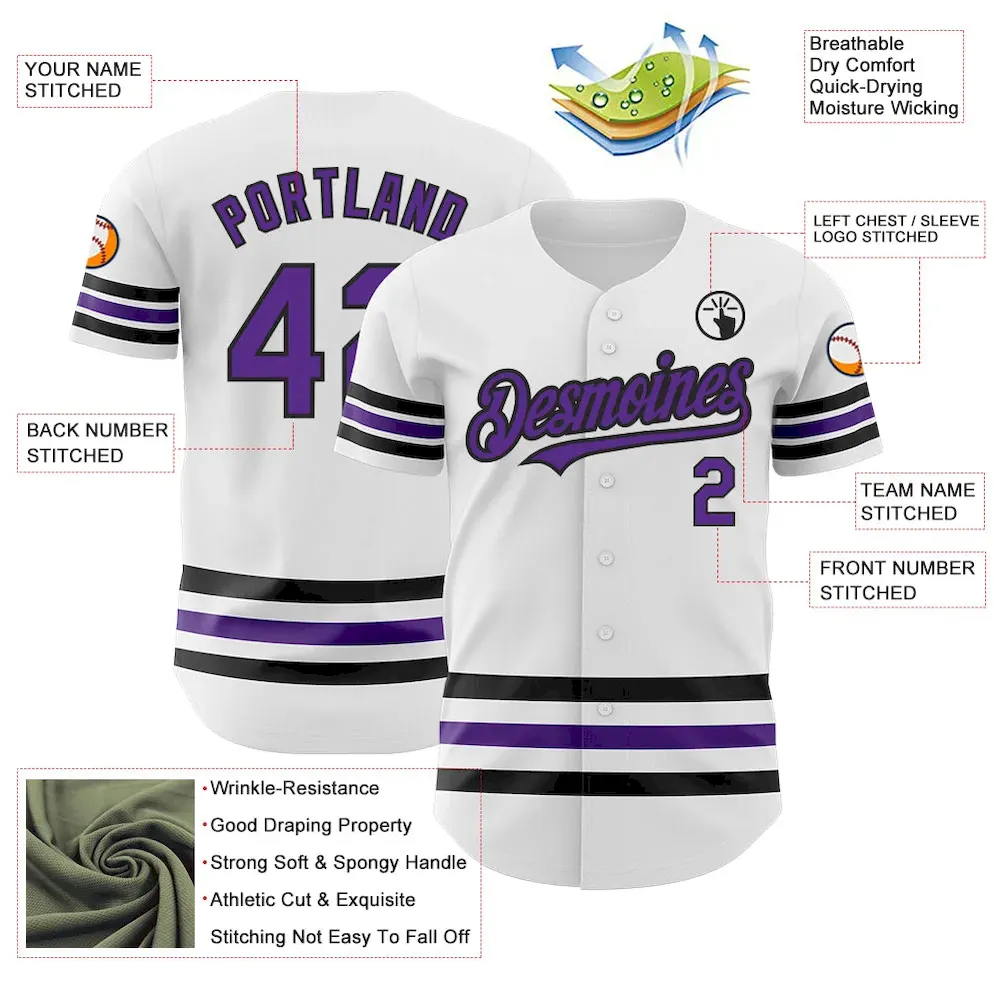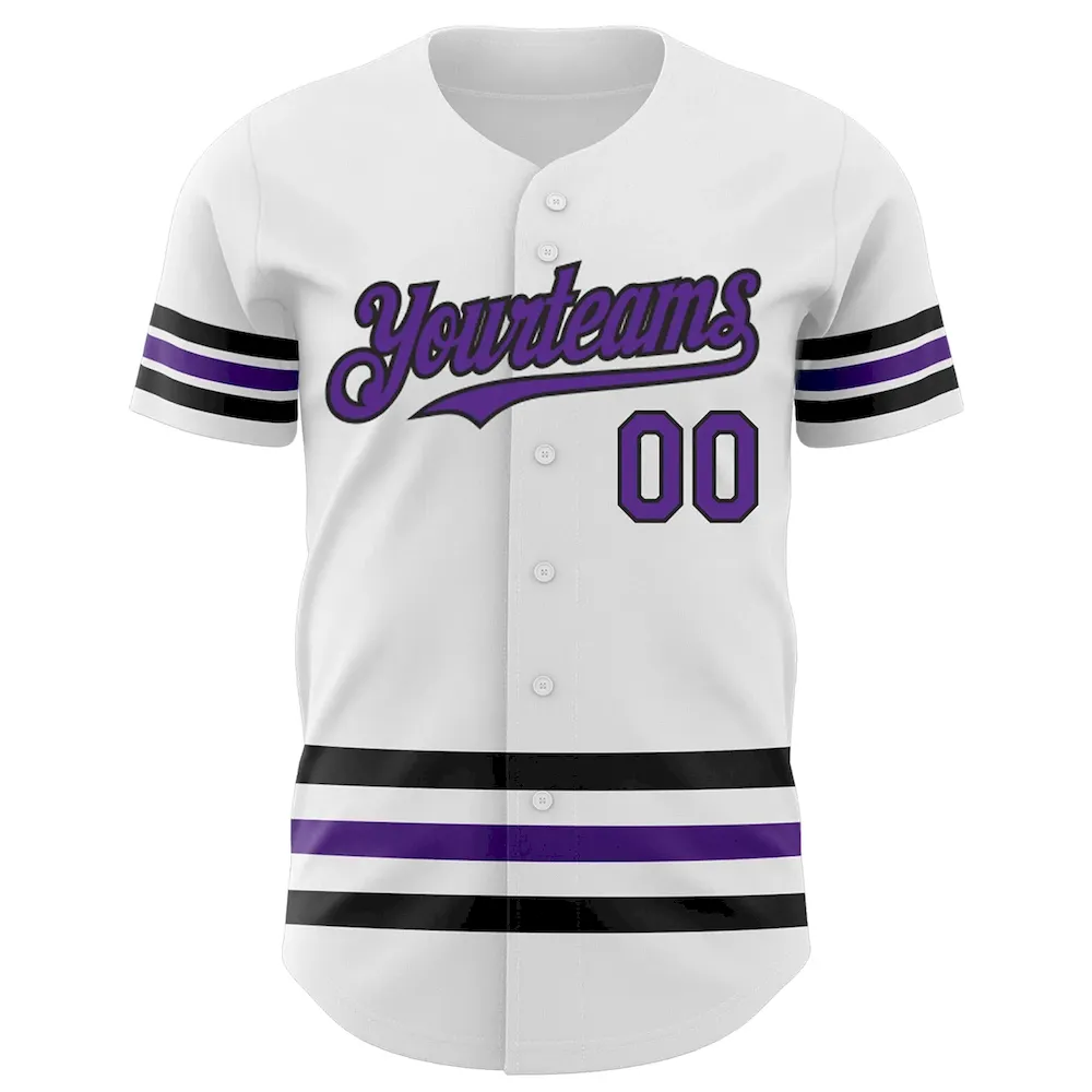 Custom White Purple-Black Line Authentic Baseball Jersey